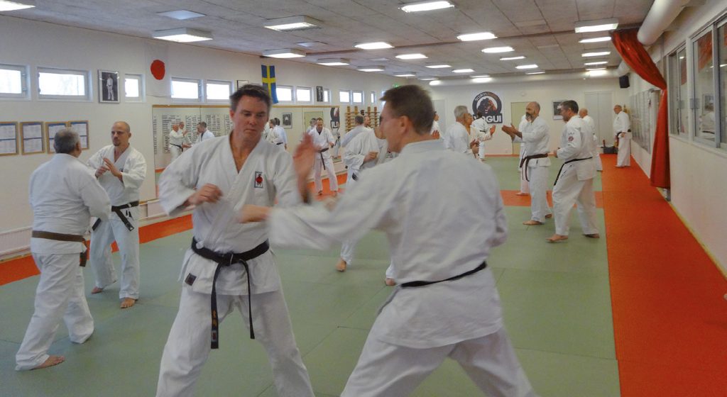 Vi fortsatte med att på egen hand träna på ytterligare några Kihontekniker. Ännu mer finslipning och ännu mer glada miner, när man inser att man faktiskt fortfarande kan grundteknikerna som man haft över 20 år på sig att traggla, och nu får till perfekt, eller väldigt bra, …. kanske mer rätt så hyfsat. Men nu efter mycket fokus verkligen får till dom (igen) så att dom skulle kunna passera en gradering med flertalet ettor i betyg. Mer slipning med andra ord. I alla fall för egen del.